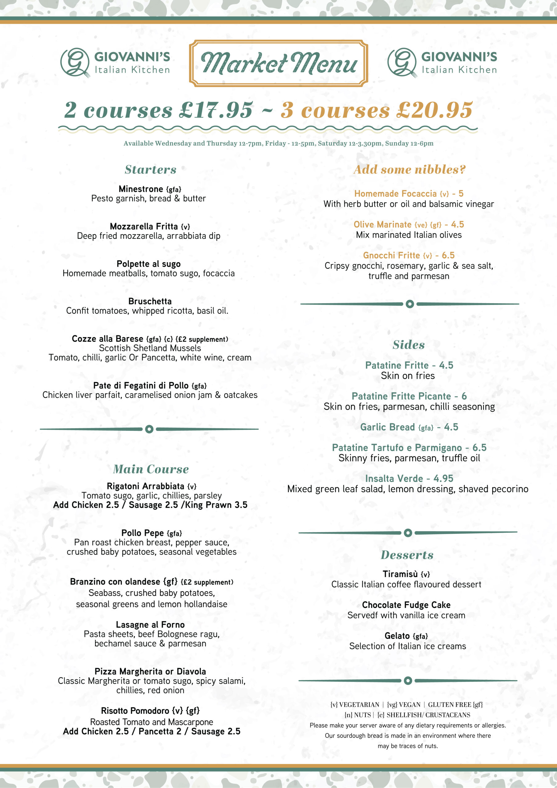 Click on our new menus above and enjoy our Italian delicious delights.Packed with Italian classics and our Giovanni spin on a few dishes that we know you’ll love.